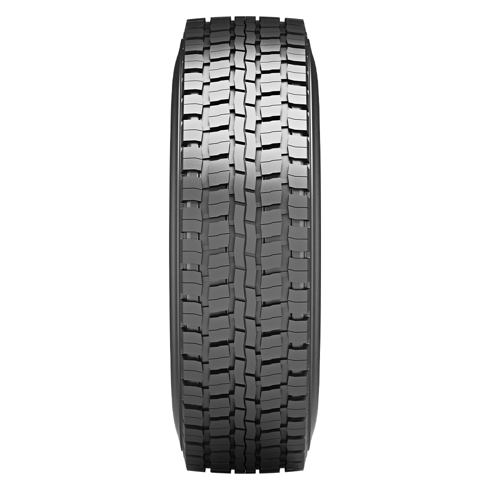 Ця модель поєднує надійність, довговічність і ефективність у роботі. Спеціальний дизайн протектора з п’ятьма ребрами забезпечує чудове зчеплення та стабільність під час маневрування. Відкрита плечова зона сприяє швидкому відведенню води, гарантуючи впевнене керування навіть на мокрому покритті. Глибокі й широкі канавки збільшують ресурс пробігу та подовжують термін експлуатації шини.